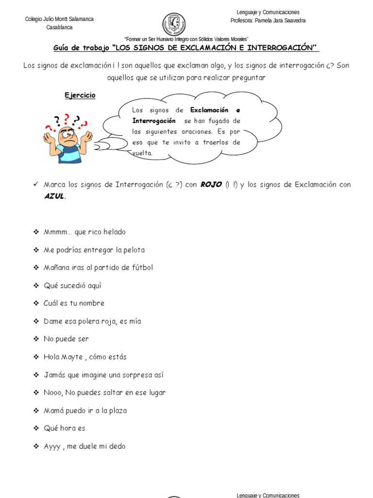 Este es una pequeña imagen de la ficha de signos de admiración e interrogación que estará a tu disposición de manera gratuita. A entoación interrogativa ou exclamativa márcase ao final do enunciado por medio dos signos ? Se escribe signo de admiración para indicar el los signos de admiración se escriben: 10000+ resultados para 'signos de admiración y interrogación'. Los signos de admiración son signos ortográficos que se utilizan en la escritura para informar al lector sobre un tipo de entonación que el escritor quiere indicar.
