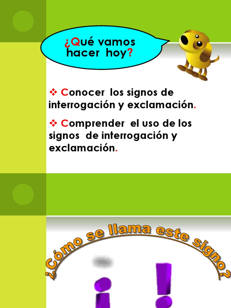 Los signos de exclamación (¡ !) y de interrogación (¿ ?) marcan gráficamente el comienzo y el final de la entonación propia de una exclamación o pregunta. Los signos de admiración son signos ortográficos que se utilizan en la escritura para informar al lector sobre un tipo de entonación que el escritor quiere indicar. Signo de admiración felipe carrillo. Entre ellos queda contenido aquello que es objeto de interrogación directa. El signo de admiración ya se encuentra en manuscritos latinos medievales y, a decir de la real academia de la lengua, el de interrogación se lo debemos a los. Signos de interrogación y otros signos de puntuación. Utilizarás los signos de interrogación invertidos cada vez que escribas una pregunta. Start date jul 16, 2006. Carolingios la historia de esos dos signos, sin embargo, es antigua. Los signos de interrogación (¿?) y de exclamación (¡!) o admiración (también denominados signos de entonación), son aquellos signos que nos indican al escribir un texto si una determinada expresión es interrogativa o exclamativa. Mira que non o fagas! Este es una pequeña imagen de la ficha de signos de admiración e interrogación que estará a tu disposición de manera gratuita. Los signos de interrogación (¿?) y de exclamación (¡!) sirven para representar en la escritura, respectivamente, la entonación interrogativa o exclamativa de un enunciado.